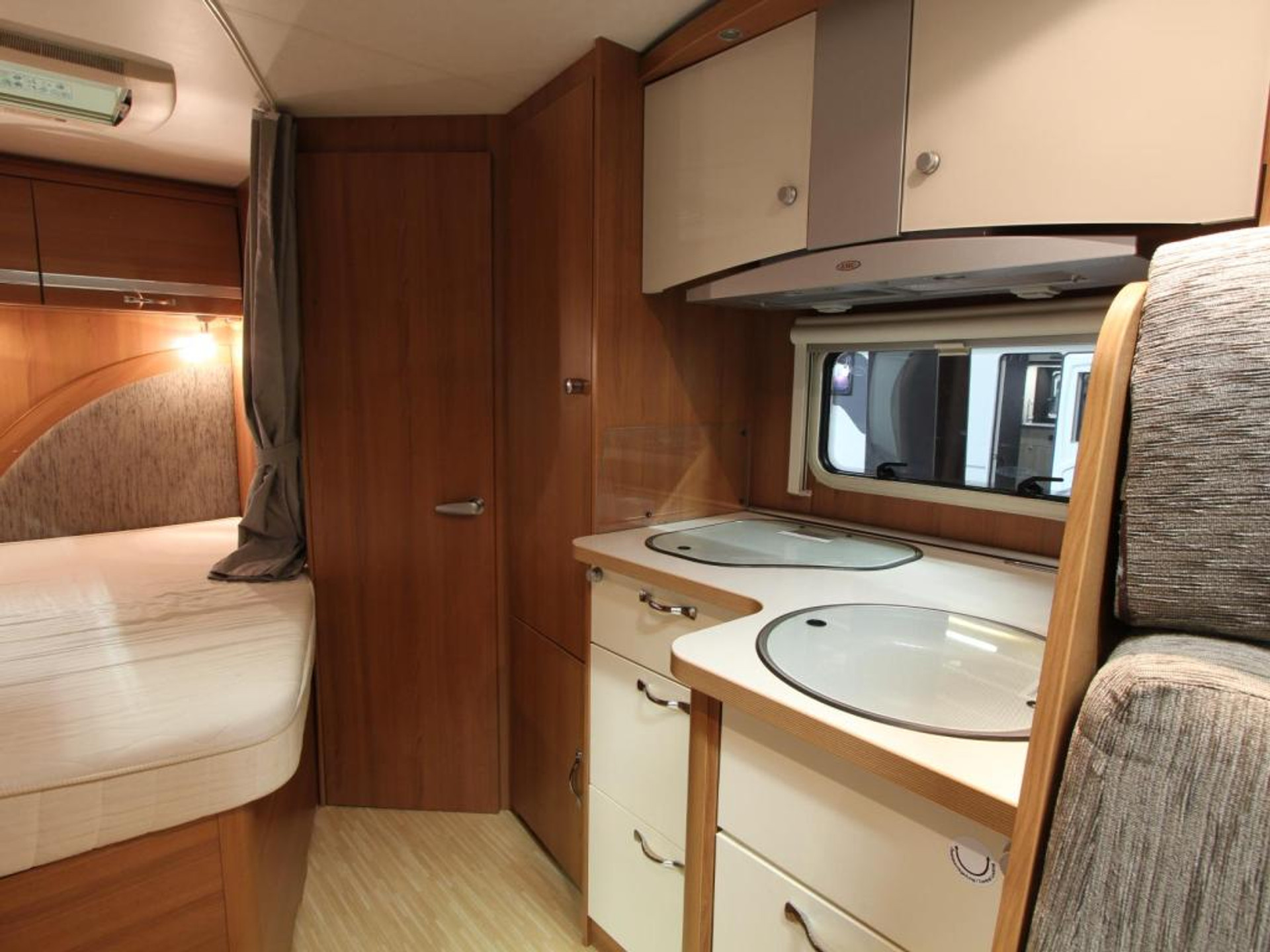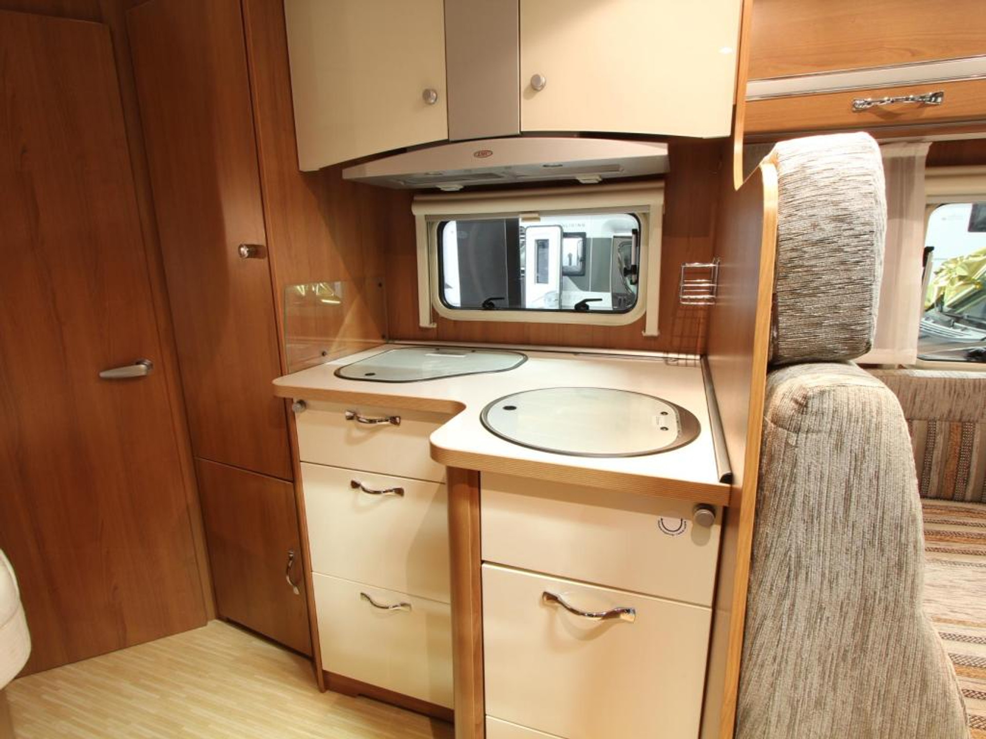 Binnenin nodigt de gezellige L-zit uit om samen te eten, te ontspannen of een spelletje te spelen. De centrale keuken is volledig uitgerust met een 3-pits kooktoestel, spoelbak met kraan, koelkast met vriesvak en een boiler voor warm water – alles wat u nodig heeft voor heerlijke maaltijden onderweg.