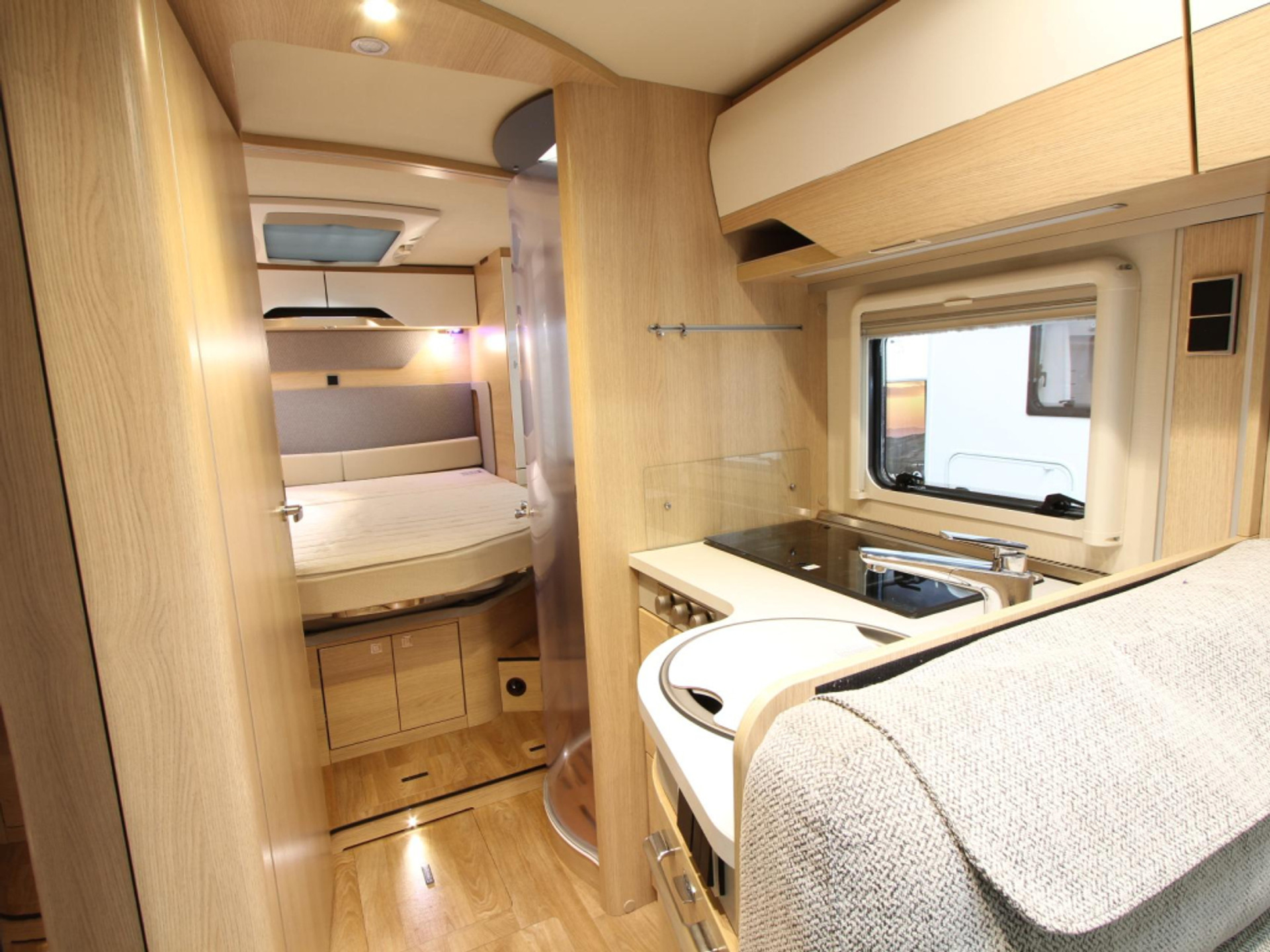 De camper is voorzien van een handige L-zit voor een sfeervol samenzijn. De middenkeuken, waar de camper over beschikt, is onder meer voorzien van een 3-pits kooktoestel, spoelbak en kraan. Een ingebouwde boiler voorziet u van warm water. De koelkast met vriesvak biedt voldoende ruimte voor heel uw voorraad.