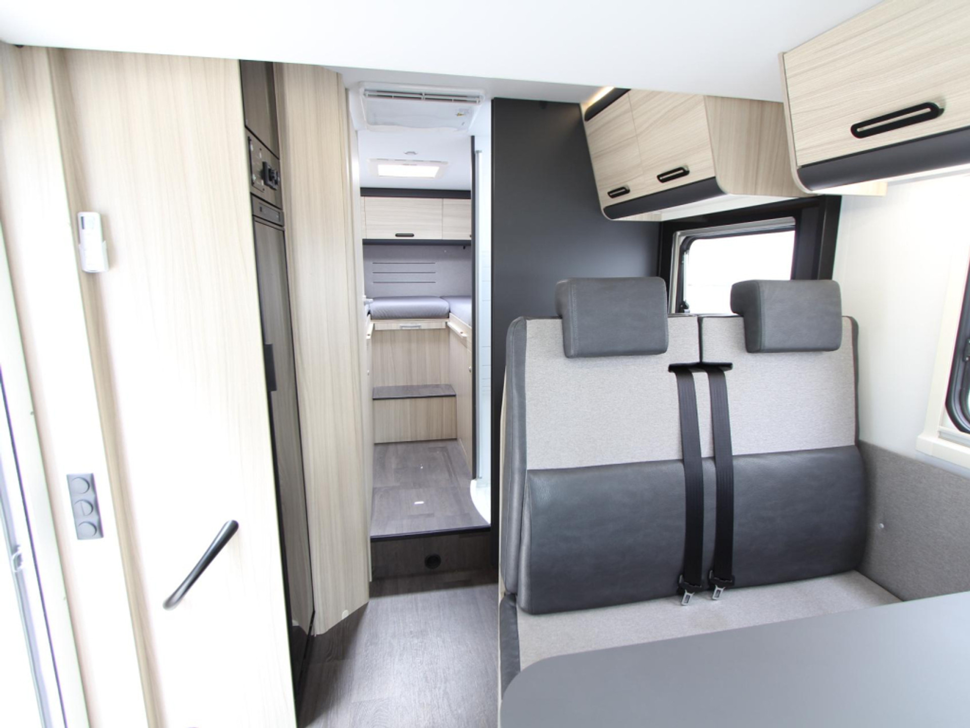 De airco houdt het interieur aangenaam koel op warme dagen, terwijl het luchtcirculatiesysteem de warmte in het hele voertuig gelijkmatig verdeelt. De hordeur houdt insecten buiten, en de Thule cassetteluifel is tijdbesparend en eenvoudig in- en uit te draaien. Andere praktische voorzieningen zijn onder meer een vaste afvalwatertank, leeslampjes en een buitenlamp.