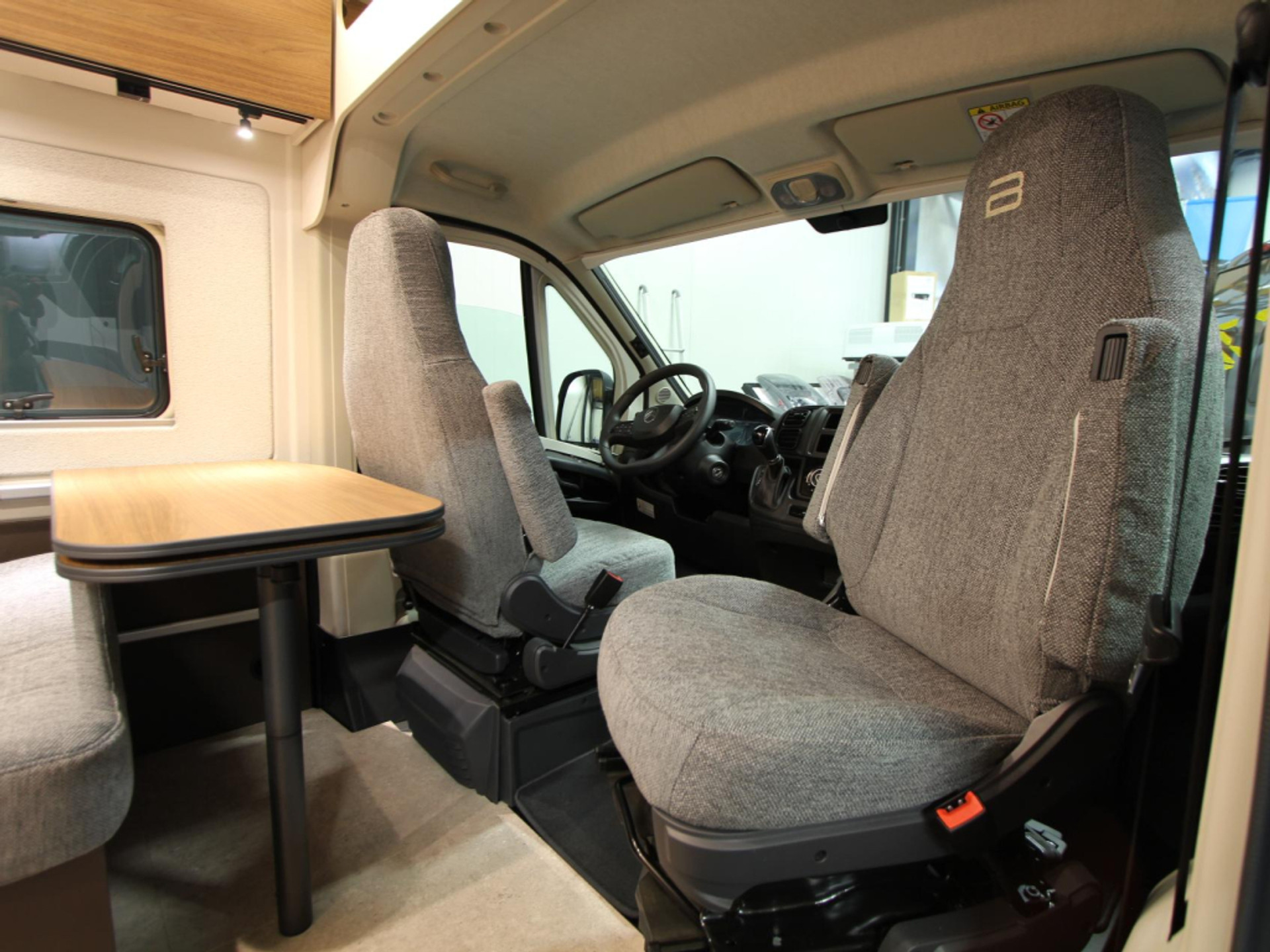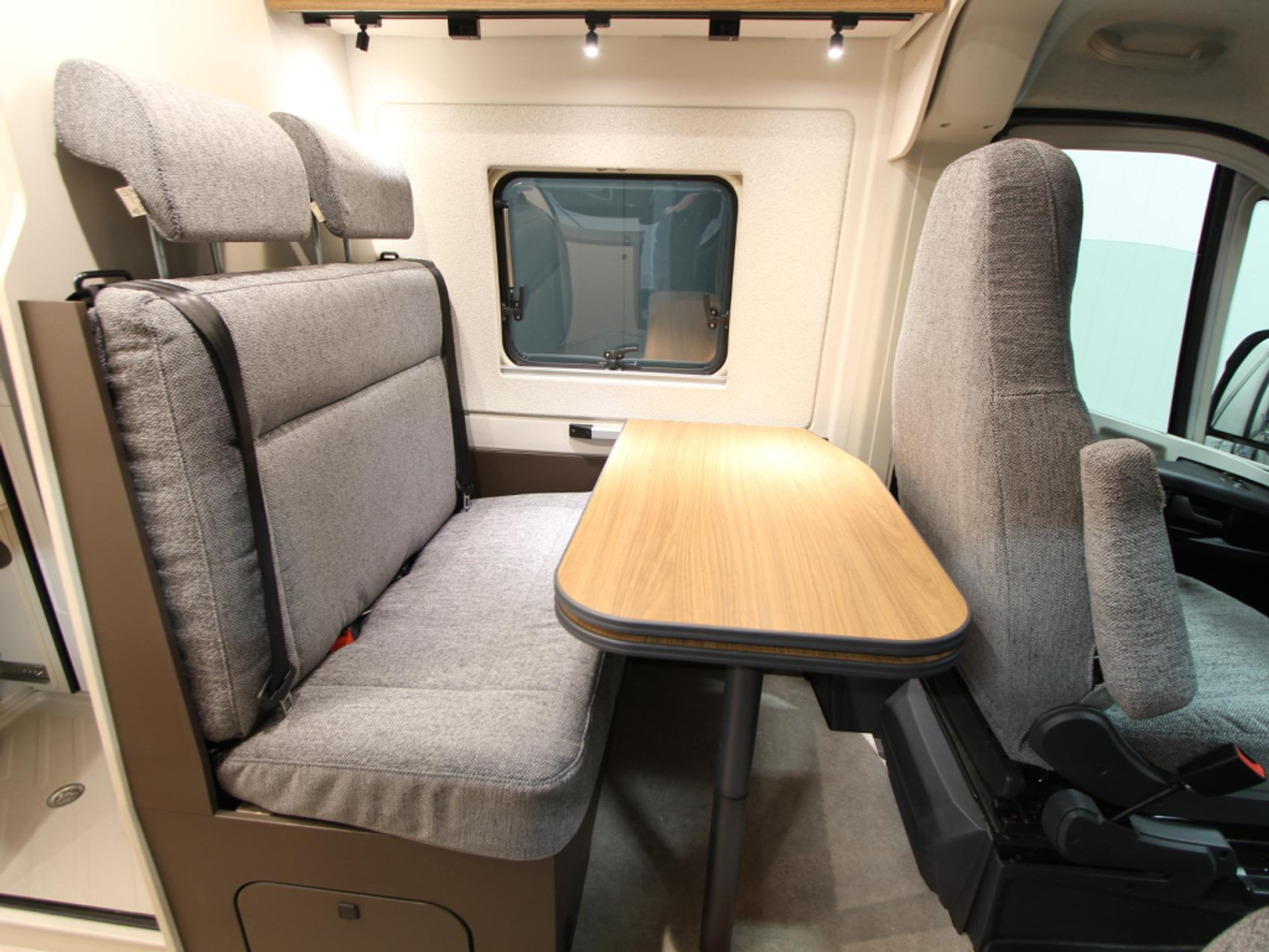 De camper beschikt over een gezellige treinzit, ideaal voor ontspannen momenten onderweg. De middenkeuken is praktisch ingericht met een 32 liter ladekoelkast en een slimme snijplank/spoelbakdeksel.