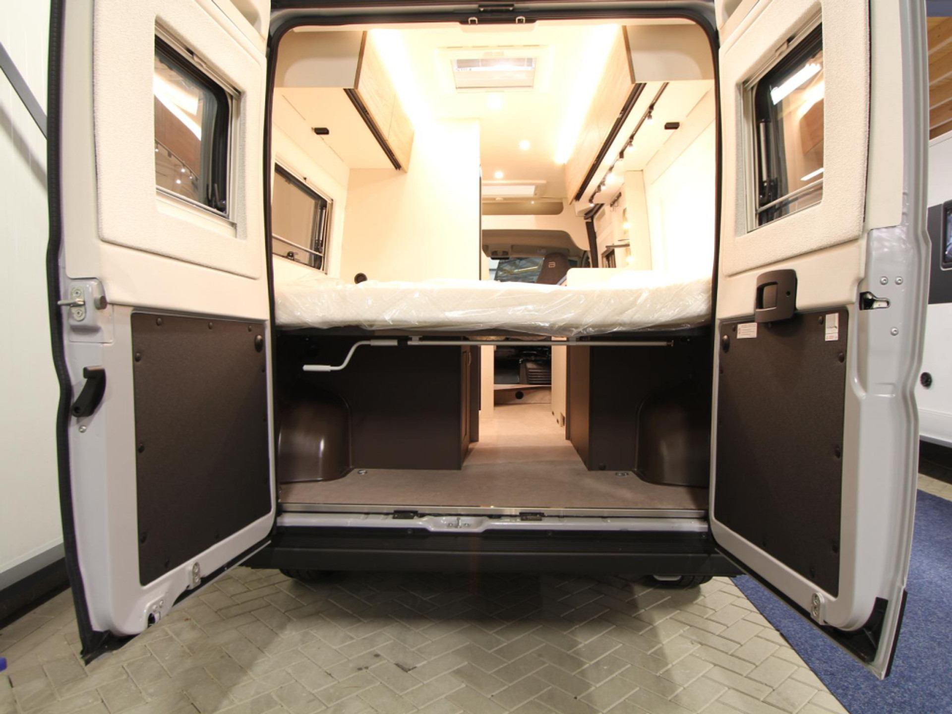 Achterin bevindt zich het comfortabele dwarsbed van 190 x 150 cm, geschikt voor twee personen. Het bed is voorzien van een hoogwaardig traagschuimmatras, wat garant staat voor een goede nachtrust.