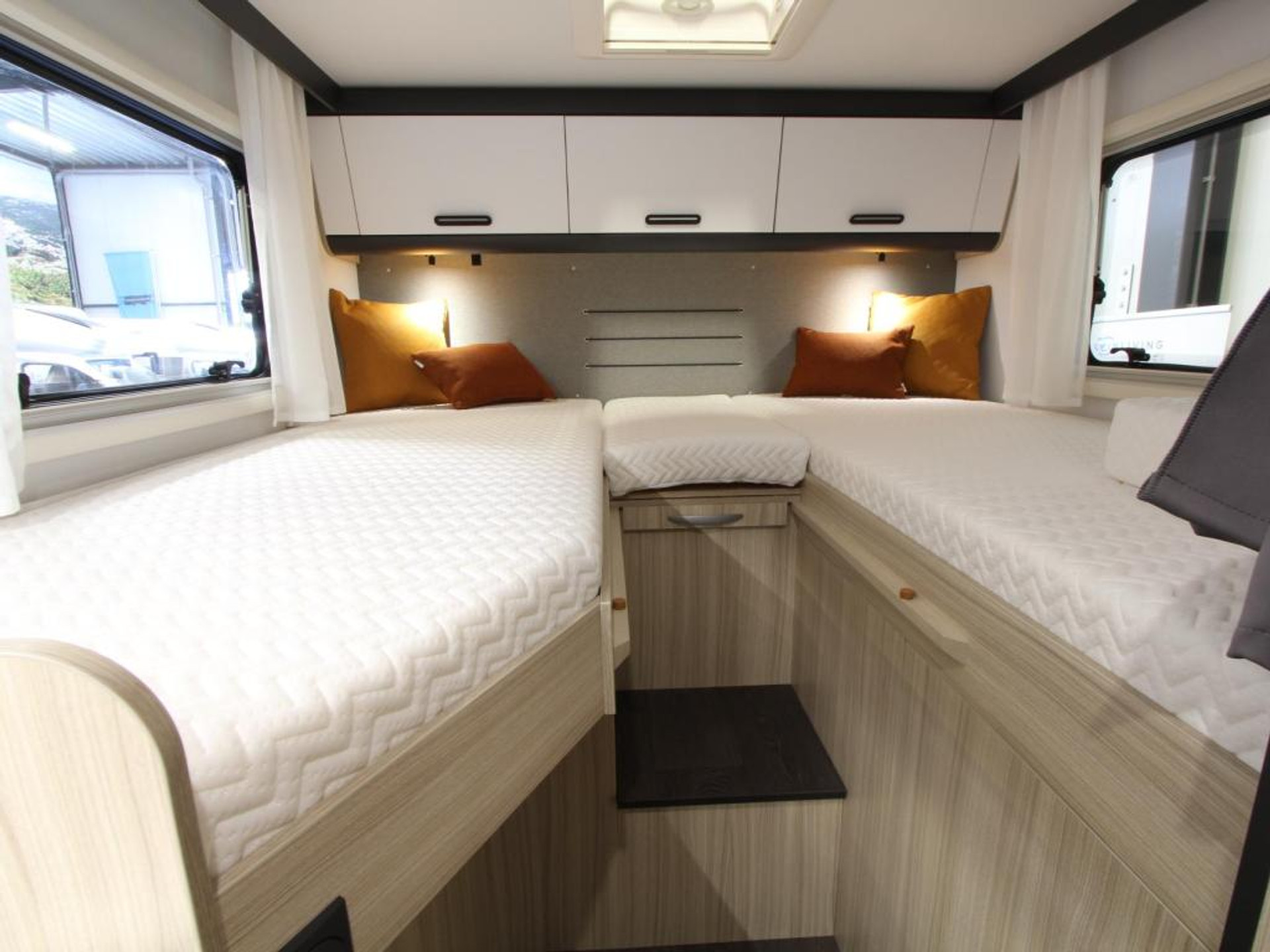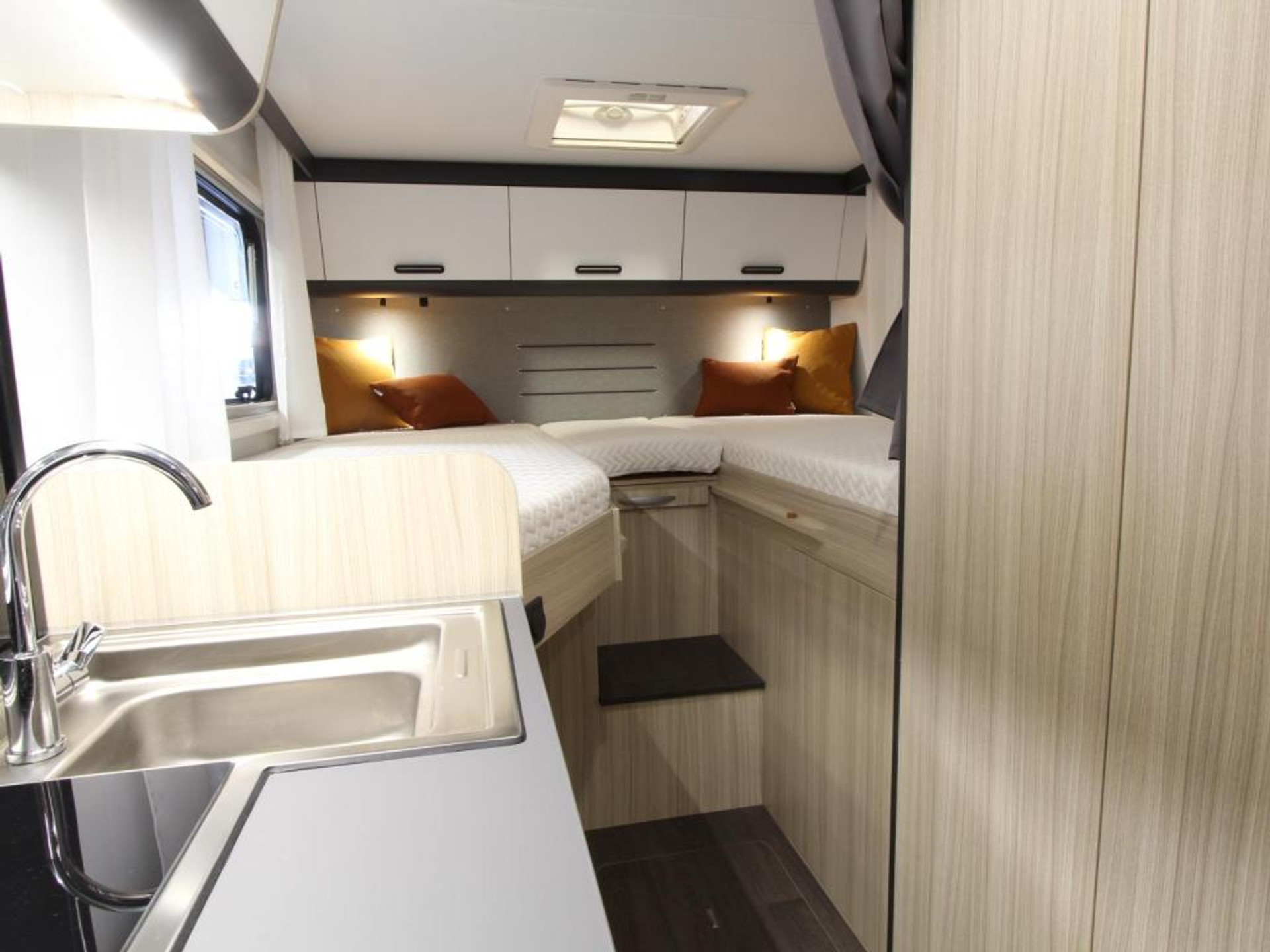 In de camper vindt u onder meer twee aparte lengte bedden die door middel van een uitschuifbaar tussen stuk tot een ruim 2 persoons bed gemaakt kan worden. U kunt in deze camper genieten van een uitstekende nachtrust dankzij de lattenbodems en de traagschuimmatrassen op de bedden. De badkamer biedt gelegenheid om u aan de wastafel op te frissen en er is tevens een cassettetoilet en douche.
