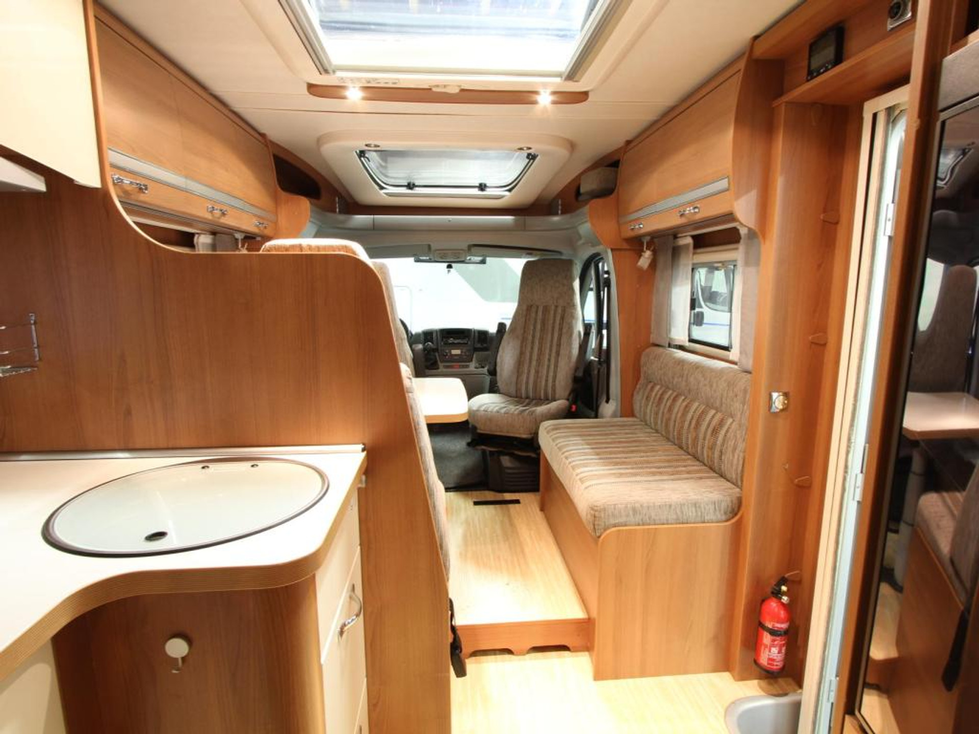 Binnenin nodigt de gezellige L-zit uit om samen te eten, te ontspannen of een spelletje te spelen. De centrale keuken is volledig uitgerust met een 3-pits kooktoestel, spoelbak met kraan, koelkast met vriesvak en een boiler voor warm water – alles wat u nodig heeft voor heerlijke maaltijden onderweg.