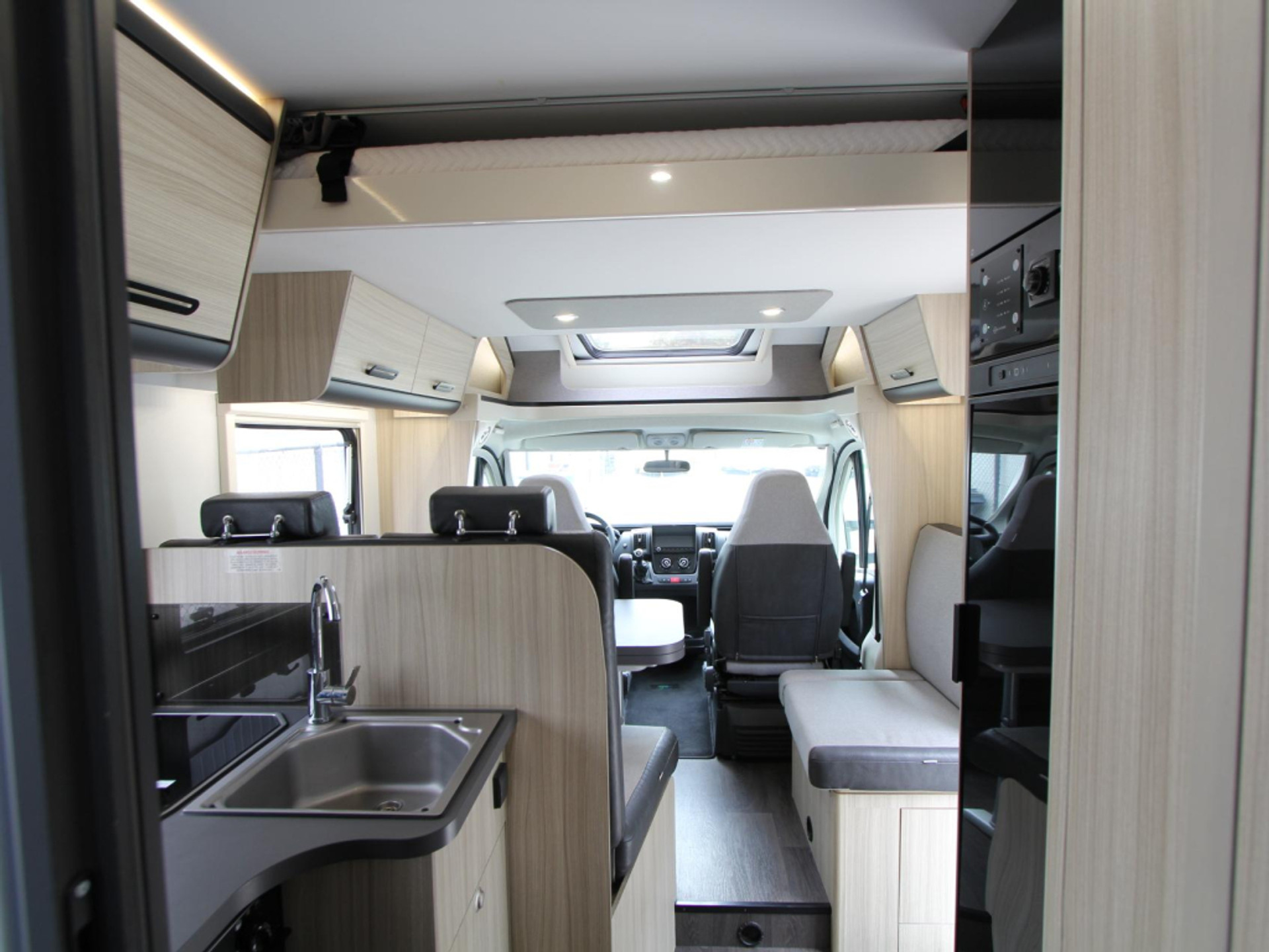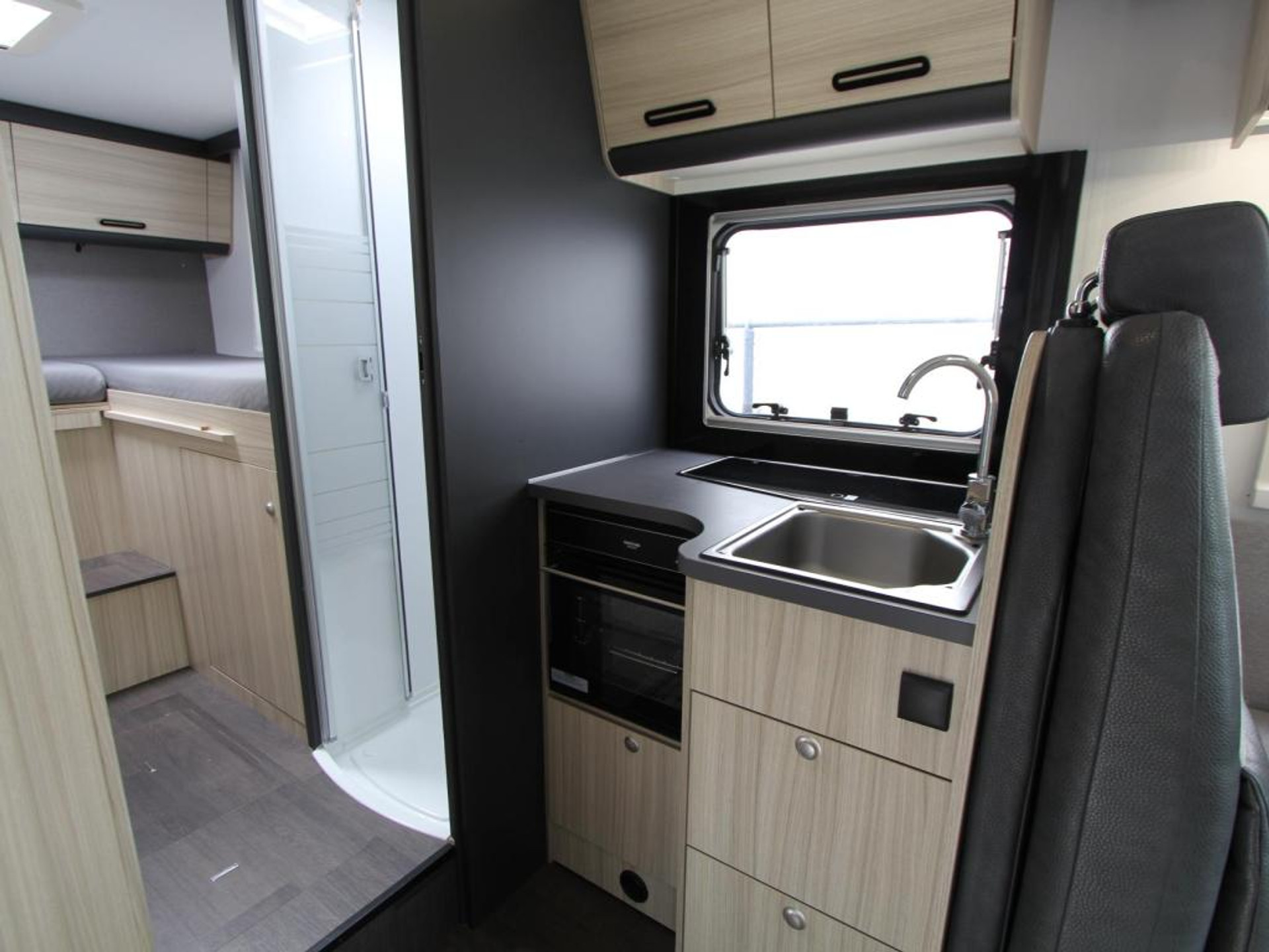 De airco houdt het interieur aangenaam koel op warme dagen, terwijl het luchtcirculatiesysteem de warmte in het hele voertuig gelijkmatig verdeelt. De hordeur houdt insecten buiten, en de Thule cassetteluifel is tijdbesparend en eenvoudig in- en uit te draaien. Andere praktische voorzieningen zijn onder meer een vaste afvalwatertank, leeslampjes en een buitenlamp.