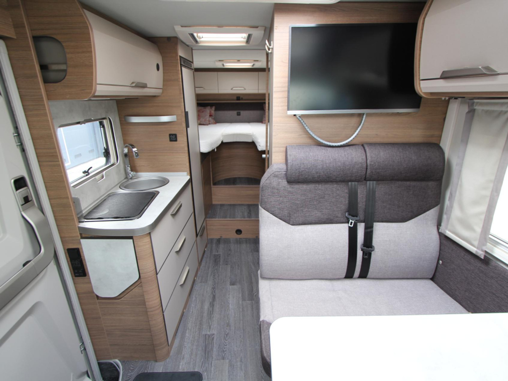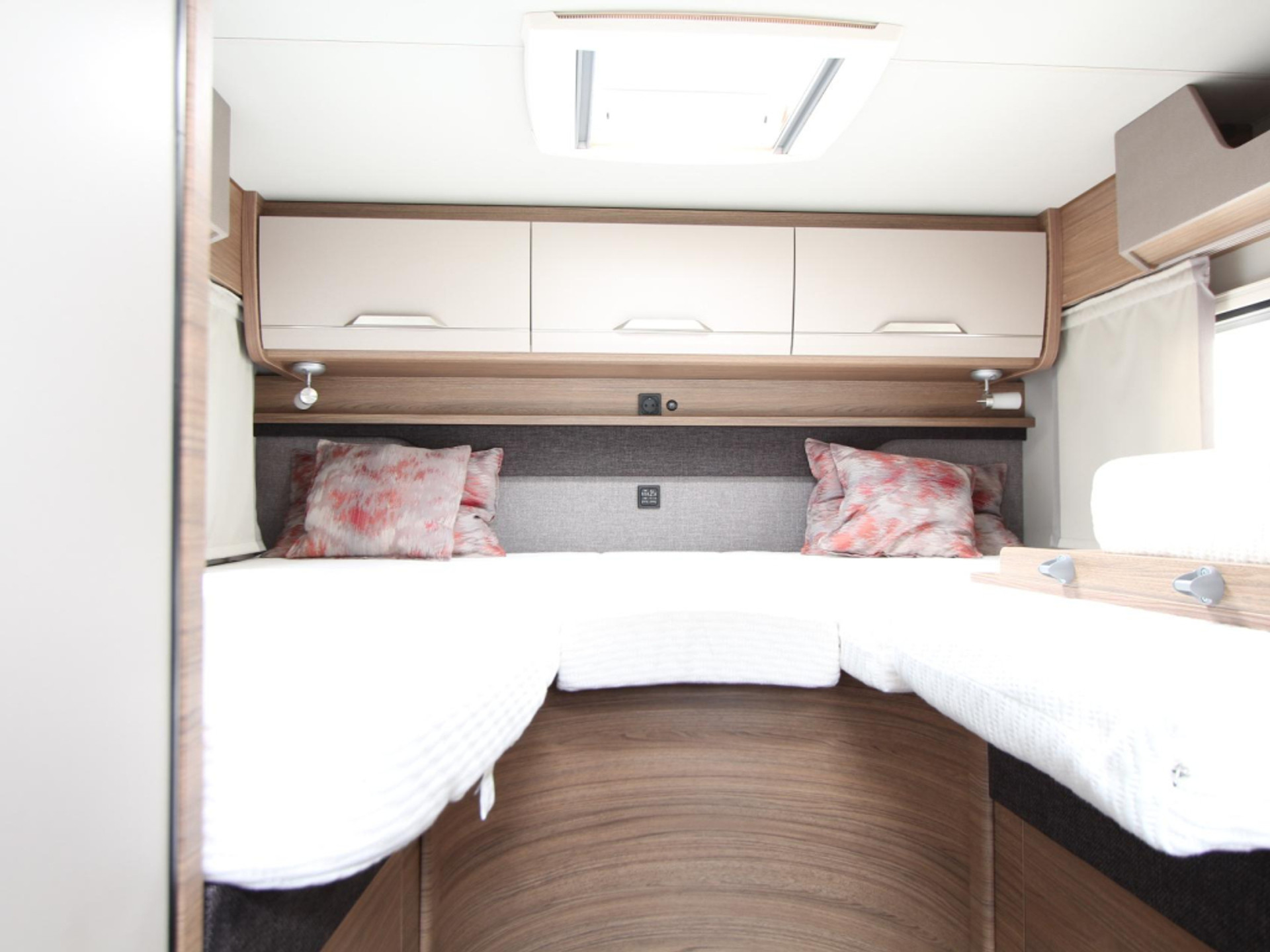Achterin vindt u twee comfortabele lengtebedden (190 x 95 cm) met lattenbodems. Geen gedoe met ombouwen: gewoon instappen en genieten van een goede nachtrust.