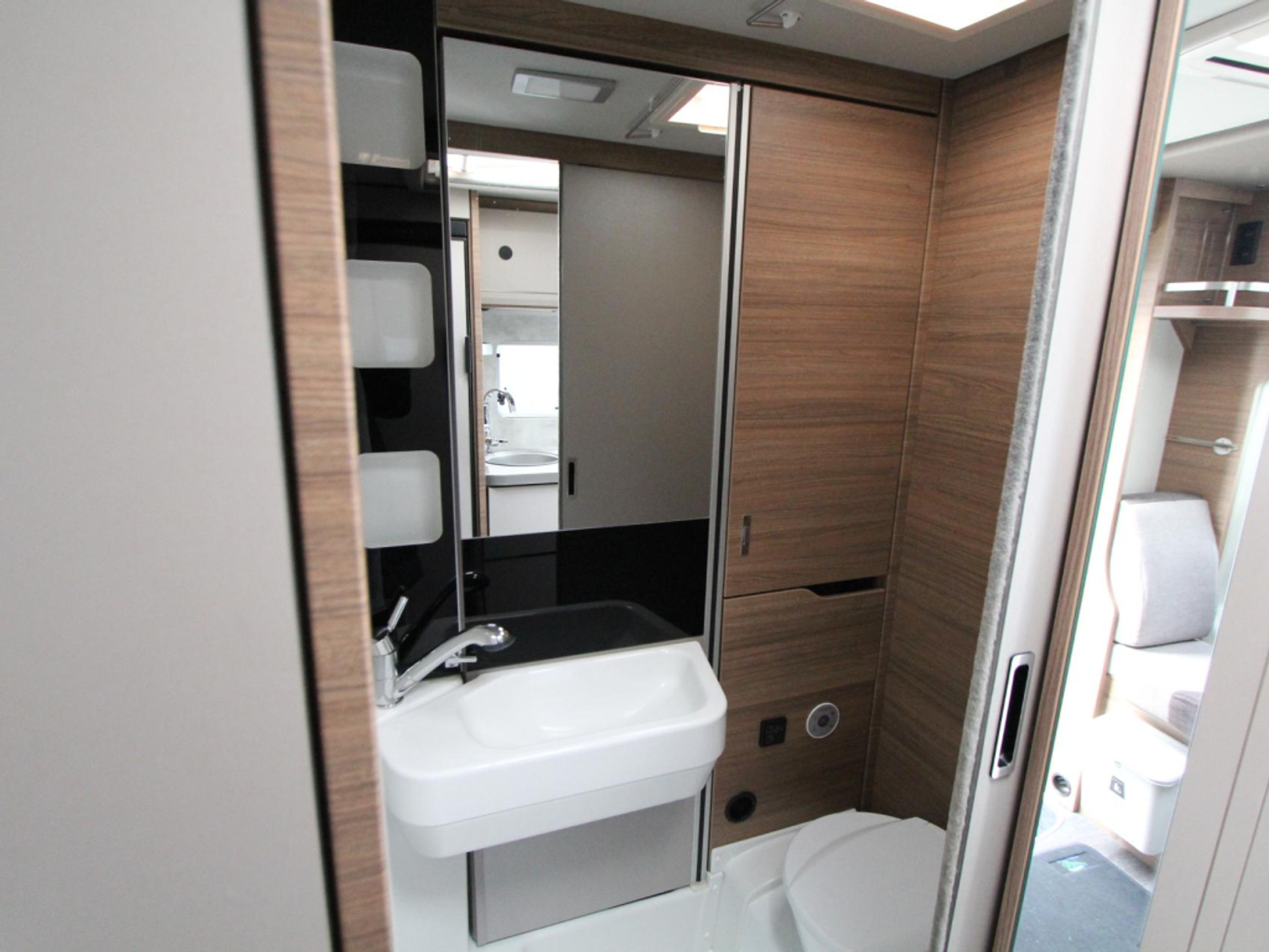De middenkeuken is compleet uitgerust met koelkast en boiler, terwijl de badkamer beschikt over een douche, cassettetoilet en uiteraard is de camper uitgerust met een vaste schoon- en afvalwatertank. Alles wat u nodig heeft om volledig zelfstandig te reizen.
