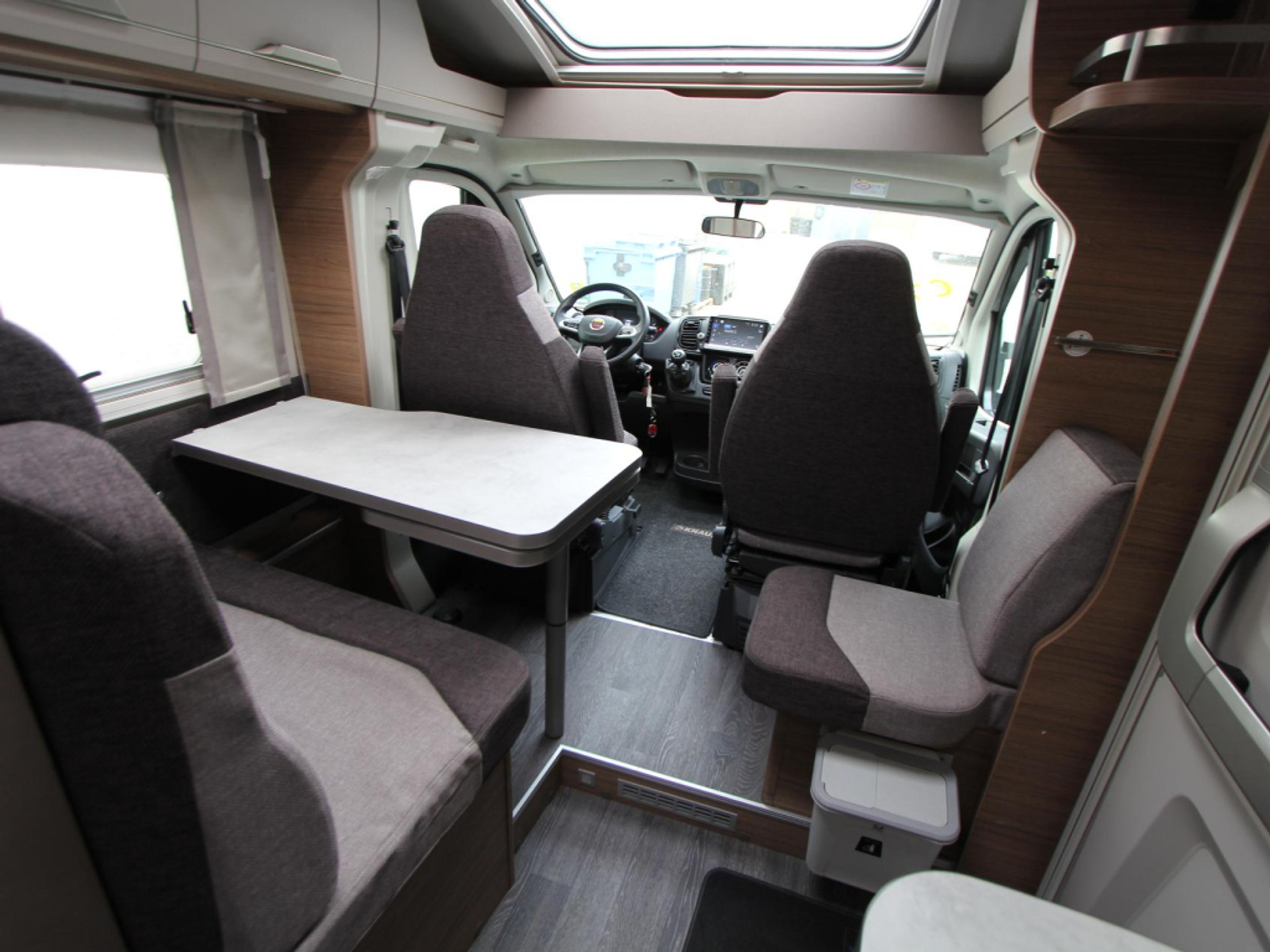 Binnen ervaart u direct de slimme en doordachte indeling. De gezellige treinzit en extra zit maken het een fijne plek om te ontspannen, eten of even tot rust te komen na een dag onderweg.
